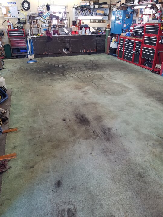 Any time i can take my shoe off, i will.My shop carpet at one time was installed in a moderate to high end motel. They were replacing all there rooms carpet i offered to haul away 5 rooms worth if they left them whole and cut them square i had um then cut to fit and seamed together so when i drove on them they wouldn't split apart and would lay relatively flat. This carpet is the second one in 37 years thats been in this shop. And was destined for the dumpster when i got it a couple of decades ago. Ive held off cleaning this time it because im activity looking for a replacement. I may even go new this time, that way ill only have 2 seams. 1 long 12'× 32' piece across the back with a 12' × 14' down each of the 2 bays so id need only 60' off a 12' wide roll each bay will still be carpeted 14×24. I do all my own maintenance and repair on equipment and vehicles. I dont own a creeper cus its like changing oil in my livingroom. There's times i turn up the heat, kick off my shoes and wench. Only problem doing repair on wall to wall carpet is if you drop a tiny part you can't hear which way it rolled. Ive convinced several dyr's if there doing maintenance in there garage or driveway to go dumpster diving at a local carpet store and get a piece of carpet to work on and when it gets too dirty toss it and pickup another