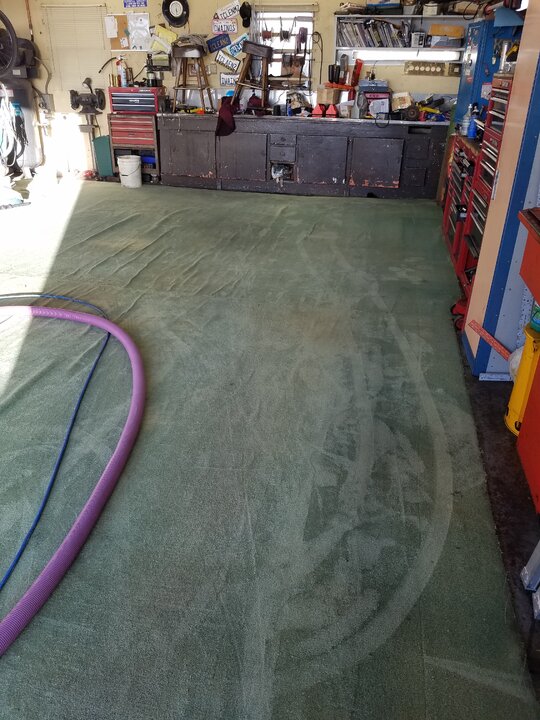 This is the first message board I've been on. I need to update.Too bad ya can't do the challenge, its pretty straightforward. This is how the carpet looks today. I would divide it into 3 spaces. The challenge is the top 2. The bottom right had 5qts of transmission oil spill on it. It can be made to look presentable but will never come completely clean. During the challenge i will clean it but the challenge is the upper part by the bench. The carpet is not tacked down and there's a blue tarp underneath as a barrier. So the carpet cal be rolled back to record exactly how much dirt and moisture i really push thru when i "soak the crap outa it and push all that dirt down into the pad". Im going to have to clean it over the Christmas holiday cus im tired of looking at it. You need to update your profile it says your in Utah. That would've only been an 800 or so mile trip.