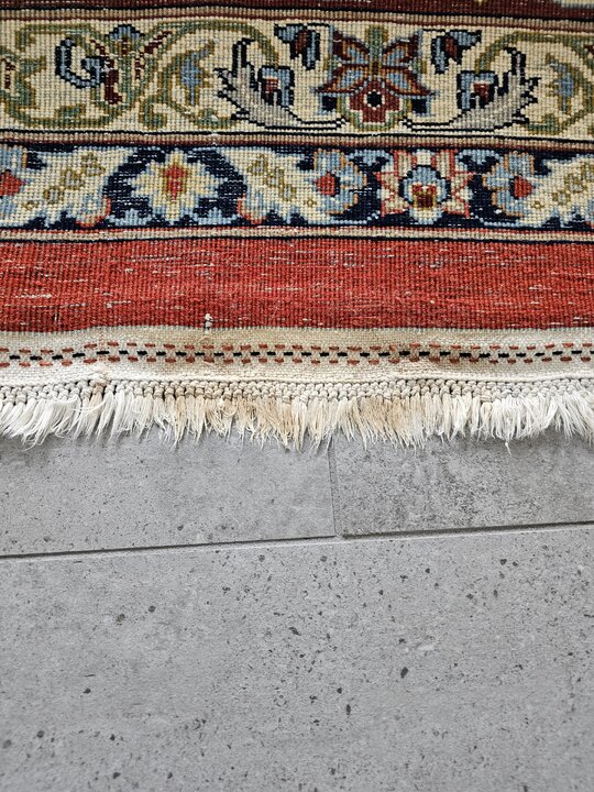 I got this rug about done except for the this spot on the fringe. I just applied a little 3 percent peroxide to see if it will work before going with volume 40.