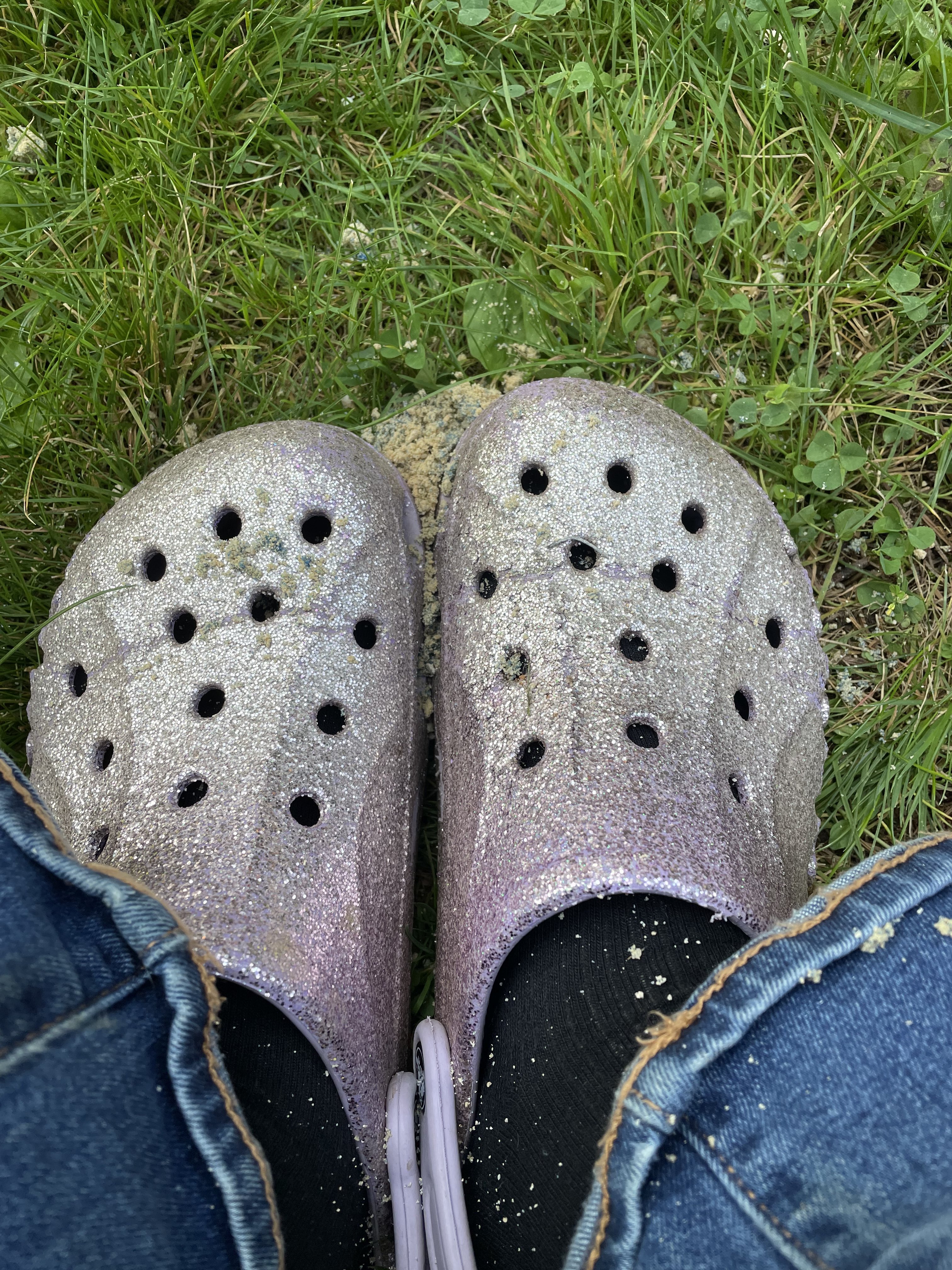When the toddler sands your feet it gets in the holes…